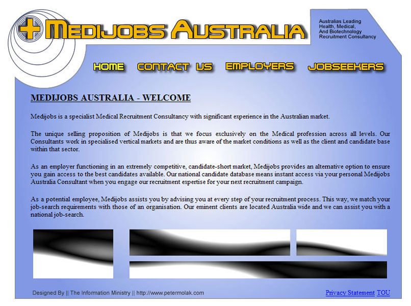 The oldest website showcased in depth in this portfolio, in 2004 I took a break from my job at AC Nielsen Australia to help some friends out with their medical recruitment business (as well as their 'second' business - Monsoon Events). In addition to working for them as a recruitment consultant, they also asked me to overhaul their existing website.
